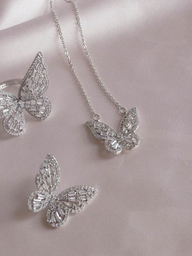 A radiant expression of nature’s artistry, this Butterfly & Flower Diamond Silhouette Pendant pairs a pavé diamond butterfly with a delicate diamond flower and a single round brilliant accent along the chain. Crafted in white gold, each motif sparkles in harmonious balance, creating an elegant jewel that captures movement, femininity and the enduring beauty of the natural world.