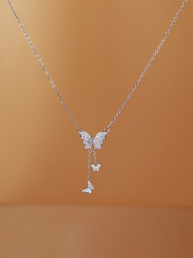 An enchanting Butterfly Silhouette pavé diamond necklace featuring a total approximate diamond weight of 0.35 carats.