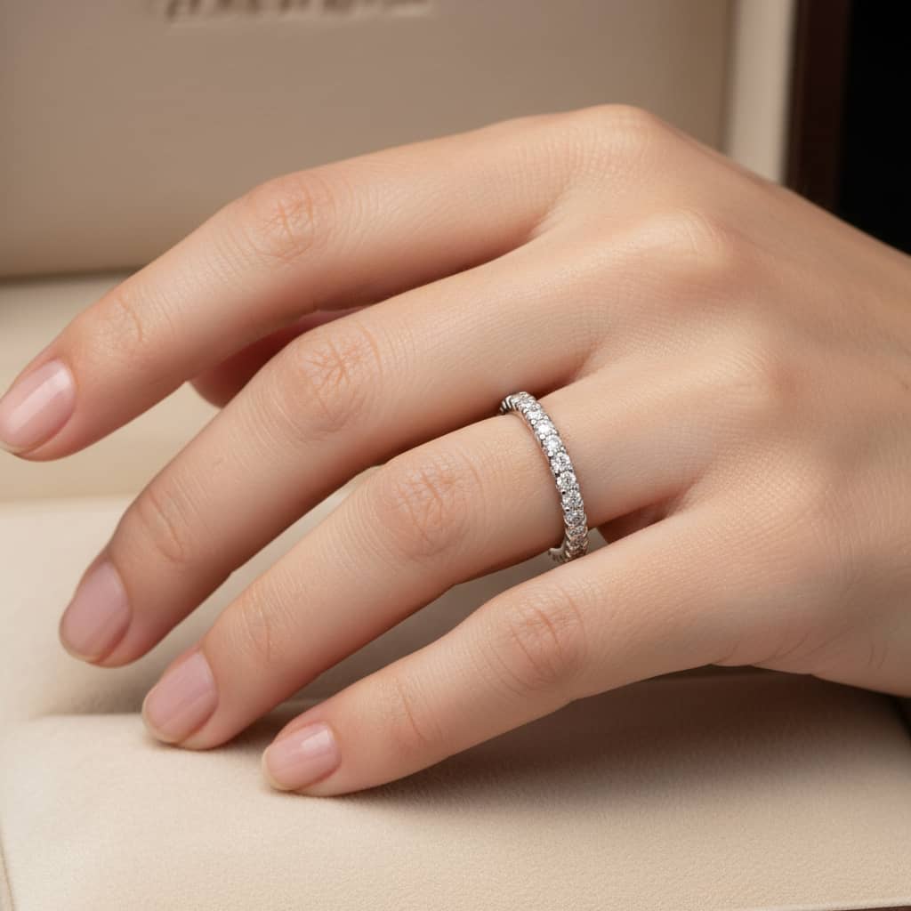 An elegant Classic Litaraa round diamond eternity band with a total approximate diamond weight of 0.28 carats.