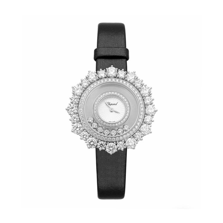 silvered dial, silver stainless steel, black satin strap