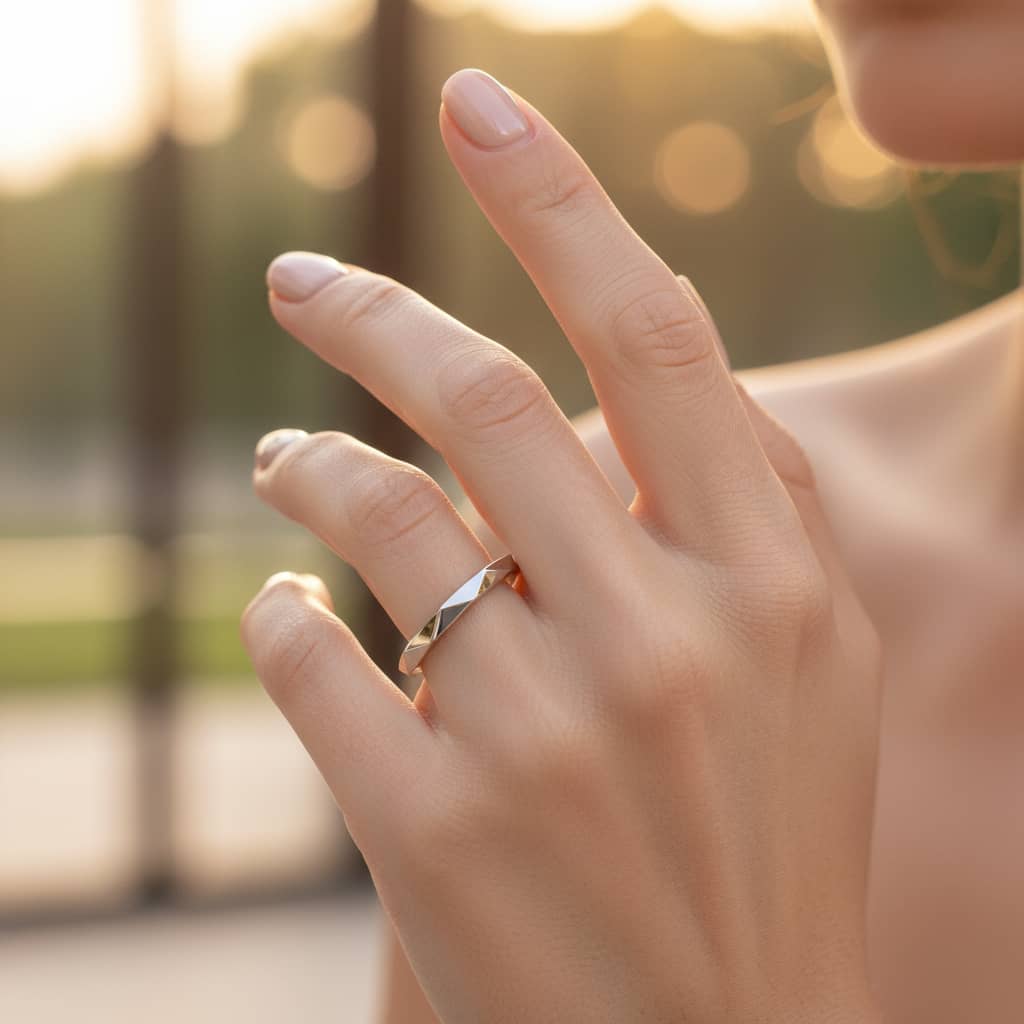 Expertly fashioned from premium white gold, the angular design of this minimalist 2.3 mm Litaraa Signature band echoes the brilliant facets of a diamond, a gem that defines elegance and refinement. The Litaraa Signature collection features a modern assortment of stackable bands, bangles, chic earrings, and playful pendants and rings crafted to move gracefully with the wearer.