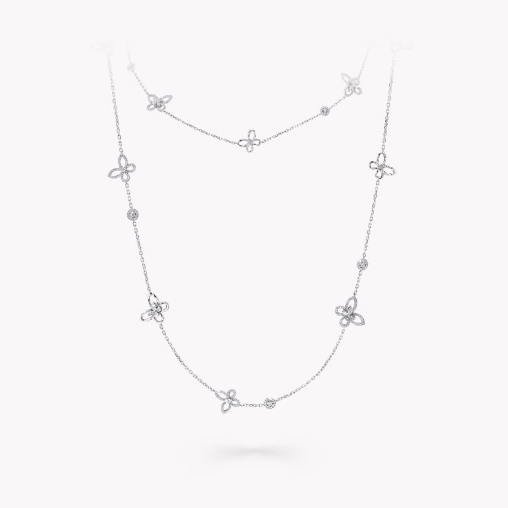 The Butterfly Silhouette collection also presents a variety of sophisticated designs, including long-length necklaces and triple butterfly rings that elegantly wrap around the finger, alongside classic diamond studs, necklaces, bracelets, and rings.