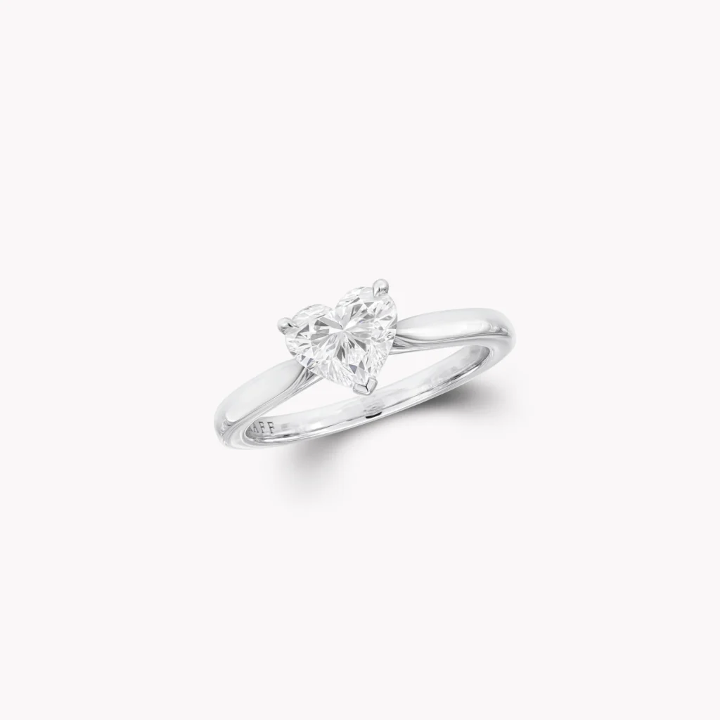 A sleek, understated platinum band beautifully complements the graceful curves of a perfectly cut heart-shaped diamond in the Paragon engagement ring. Available in a range of carat sizes, the heart-shaped diamond is a timeless symbol of love, while each solitaire in our collection is meticulously set by master artisans to ensure flawless alignment and a bespoke, elegant finish.