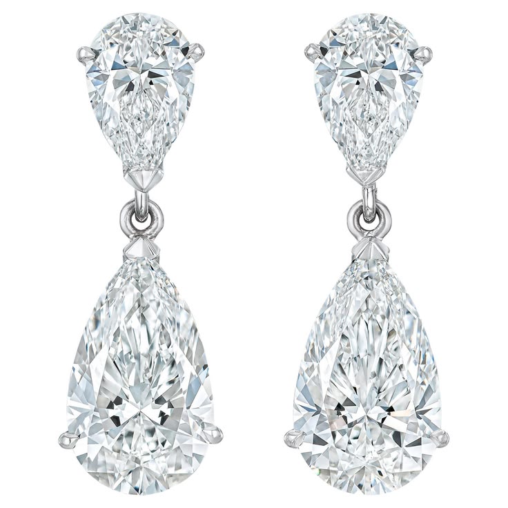 An elegant pair of Classic Litaraa pear-shaped diamond earrings featuring a total approximate diamond weight of 10.00 carats, including two certified 1.00 carat pear-shaped diamonds.