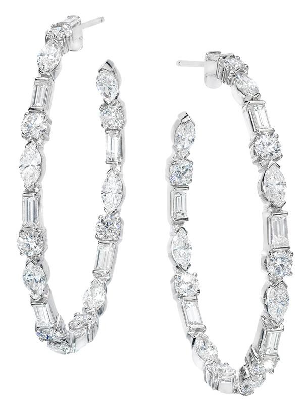 An elegant pair of Classic Litaraa round diamond hoop earrings featuring a total approximate diamond weight of 5.00 carats