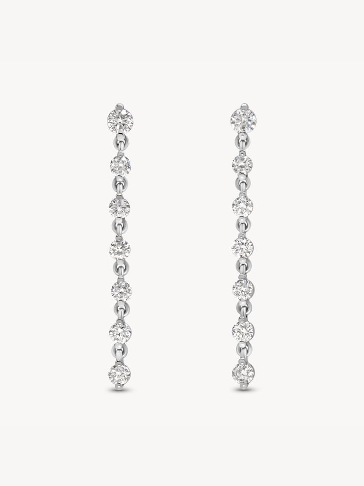 Our mini Threads earrings feature a delicate climber design, with criss-crossing rows of baguette-cut and pavé diamonds that create a striking geometric elegance.