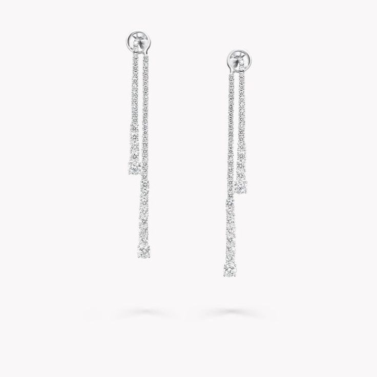 A contemporary pair of Threads baguette-cut and pavé diamond earrings featuring a total approximate diamond weight of 0.85 carats.