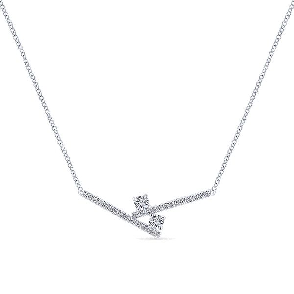 Delicate criss-crossing rows of baguette-cut and pavé diamonds intersect in this mini Threads pendant, creating a beautifully asymmetric design with modern geometric elegance.