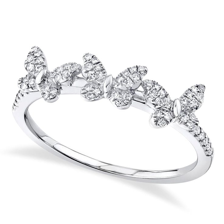 An enchanting Triple Butterfly Silhouette pavé diamond ring with a total approximate diamond weight of 0.45 carats.