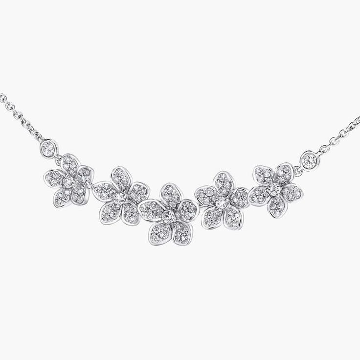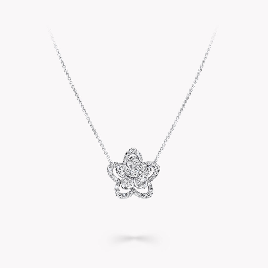The enchanting beauty of the Wild Flower collection is beautifully captured in this delicate diamond flower necklace. Crafted with Litaraa’s signature attention to detail, layers of diamonds form floral silhouettes on the pendant, with each sculpted petal individually hand-finished. Bringing a fresh, contemporary spirit to the traditional English Garden, four varieties of flowers bloom in joyful abundance, inviting you to mix, match, and make everyday diamonds your own.